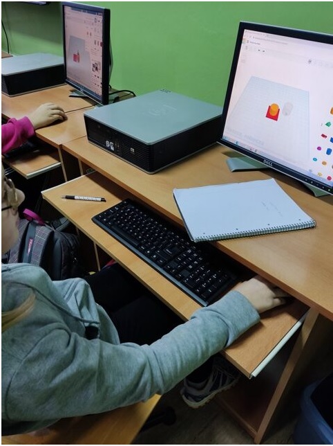 W ramach „Laboratorium Przyszłości” zakupiona została w naszej szkole drukarka 3D Flashforge Adventurer 4. Dzięki temu uczniowie zaczęli stawiać pierwsze kroki w druku 3D. Drukowanie 3D – to inaczej drukowanie przestrzenne, które polega na wytwarzaniu fizycznego obiektu poprzez nanoszenie kolejnych warstw materiału zwanego filamentem. Drukowanie to staje się coraz bardziej powszechne i z rozmachem wkracza do naszego życia. Obecnie – druk 3D pozwala stworzyć zwyczajne przedmioty , takie jak kubki, zabawki, figurki ale też można wykonać części różnych urządzeń. Na lekcjach informatyki uczniowie klas piątych i szóstych zostali zaznajomieni z podstawami druku 3D. Na początku poznali program Tinkercad – służący do modelowania przestrzennego . Tworzyli tam swoje pierwsze projekty tj. breloczki, bryły geometryczne, postacie do gry komputerowej Minecraft, domki . Modelowanie bardzo się im spodobało, szczególnie jeżeli mieli możliwość wydrukowania swojego projektu. Nie wszystko udawało się za pierwszym razem, ale dzięki temu uczniowie mogli eksperymentować z pomysłami i wyciągać logiczne wnioski. Kolejne prace były coraz lepsze, co widać na przykładzie ozdób wielkanocnych . Zajączki były bardziej skomplikowane i wymagały dużych umiejętności pracy w programie Tinkercad.