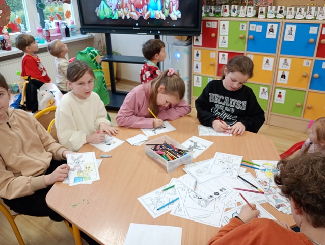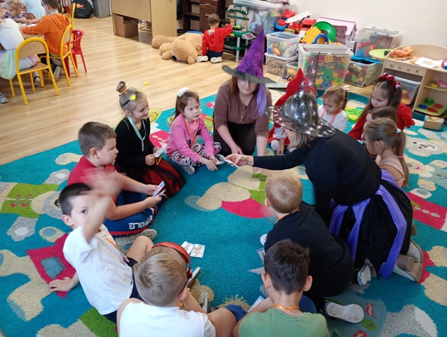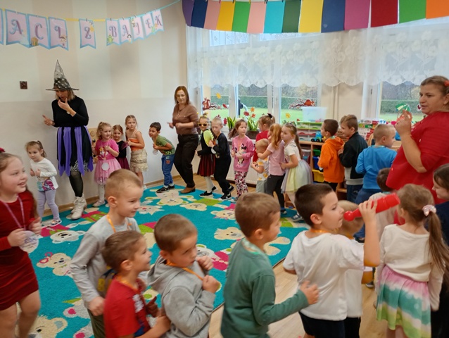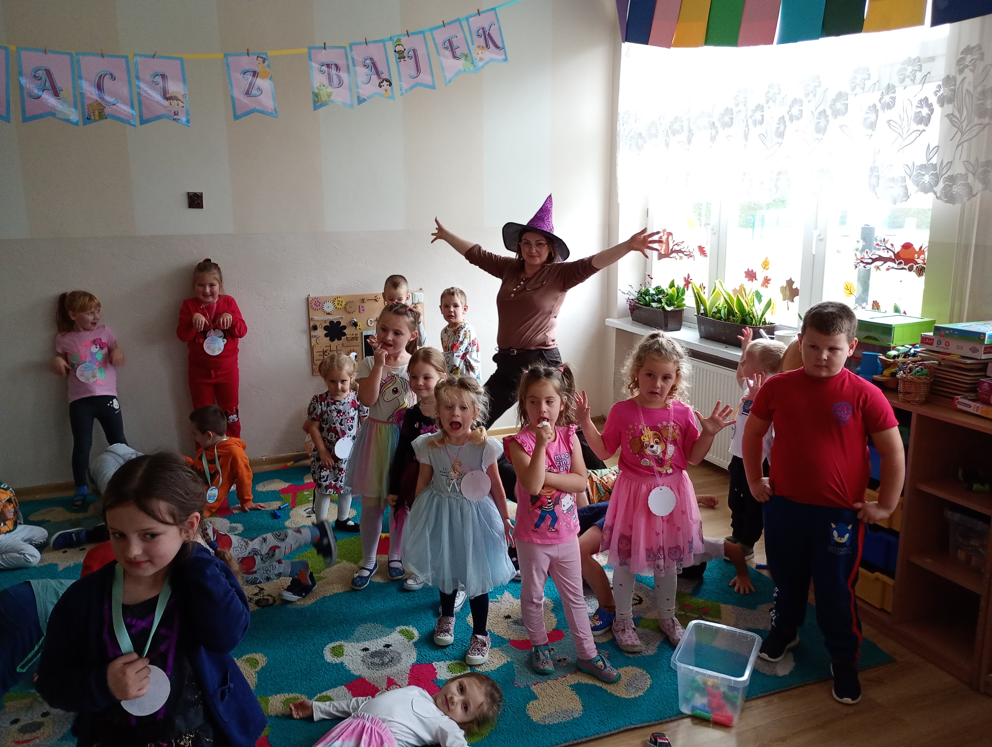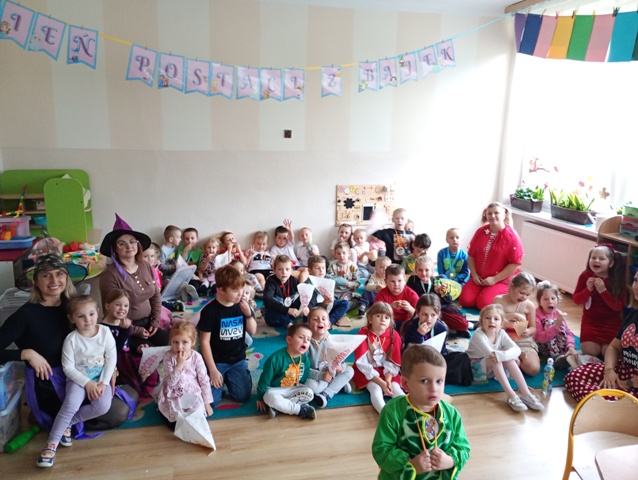 Z tej okazji 3 listopada dzieci z oddziału przedszkolnego, zerówki a także klasy pierwszej wyruszyły w podróż do krainy bajek i baśni. Był to kolorowy i wesoły dzień pełen zabaw. Uczniowie przyszli w niesamowitych przebraniach, wcielając się w swoje ulubione postacie z bajek. W trakcie dnia odbyły się quizy i zagadki związane z bohaterami, które dostarczały nam sporo radości i emocji. Dzieci miały okazję wykazać się swoją wiedzą o bajkach i zdobyć drobne nagrody. Nie zabrakło również zabaw dywanowych, które rozgrzały atmosferę. Trafnie segregowały bajkowe rekwizyty oraz układały puzzle. Dzieci brały udział w różnorodnych grach, które rozwijały kreatywność i umiejętność współpracy. Były muzyczne zabawy ruchowe oraz taneczne. Na koniec po całym dniu pełnym aktywności zorganizowaliśmy seans filmowy z bajkami, przy którym delektowaliśmy się świeżym popcornem. To był idealny sposób na relaks i podsumowanie naszego bajkowego dnia.