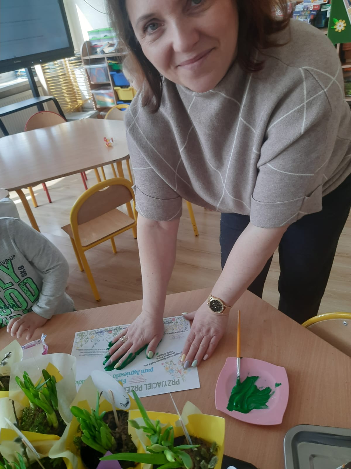 To był dzień pełen twórczej pracy, ale i wielkich emocji. Na zakończenie spotkania odbyła się miła uroczystość – Pani Agnieszka poprzez symboliczne odbicie dłoni oficjalnie dołączyła do grona Przyjaciół Naszego Przedszkola!