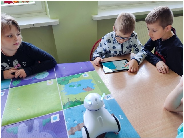 Robot już od pierwszego kontaktu budzi w uczniach pozytywne emocje i zachęca do działania, co widać na zamieszczonych zdjęciach.