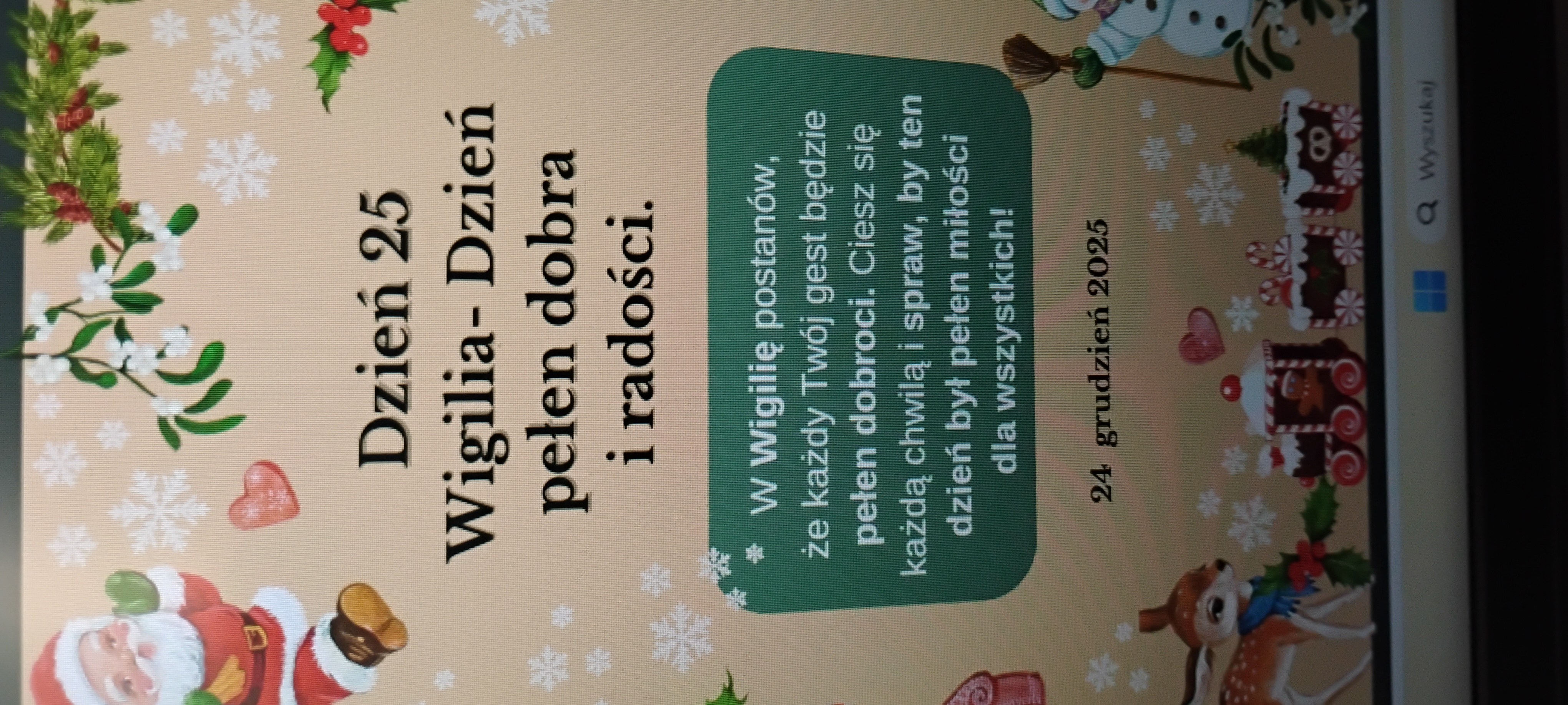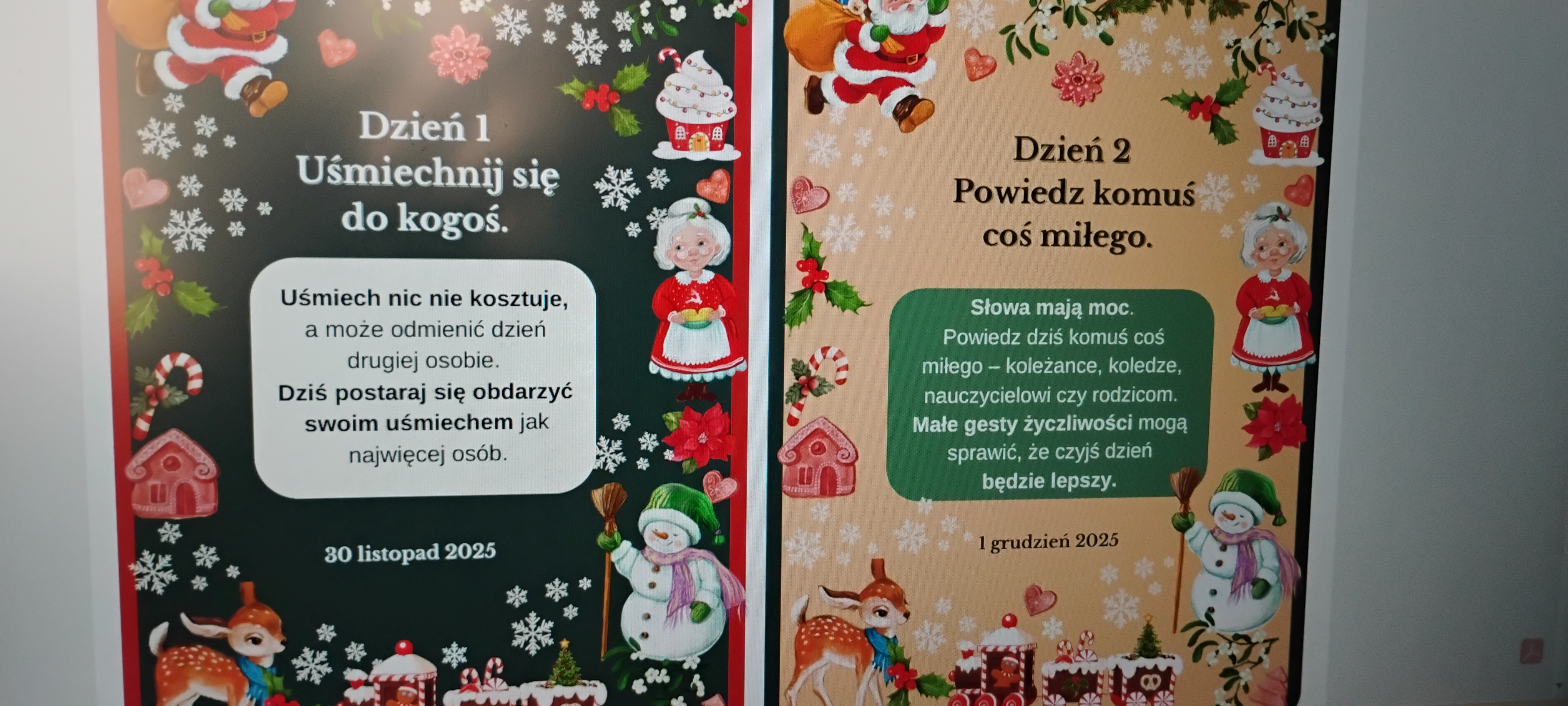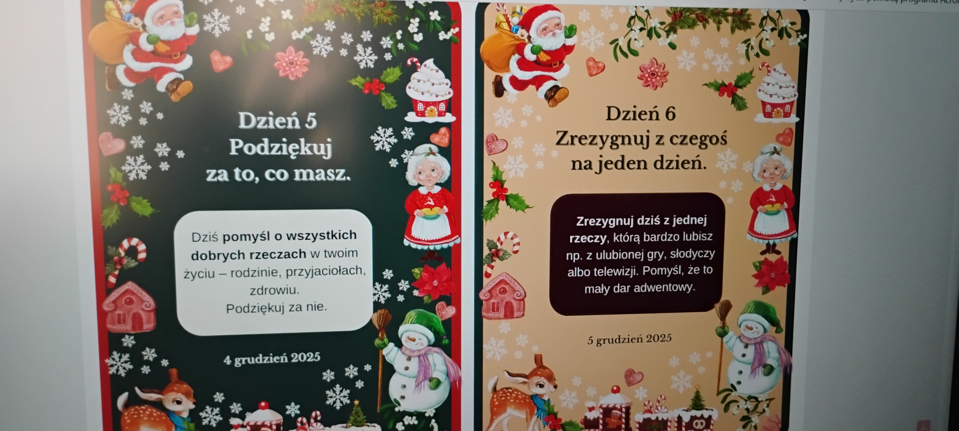 W naszej szkole był to również czas radości, współpracy i codziennych wyzwań, które towarzyszyły uczniom dzięki Kalendarzu Adwentowemu. Każdego dnia uczniowie odkrywali nowe zadanie – nie tylko rozwijające wiedzę i kreatywność, ale także uczące empatii, życzliwości i wdzięczności do drugiego człowieka oraz pozytywnego myślenia.