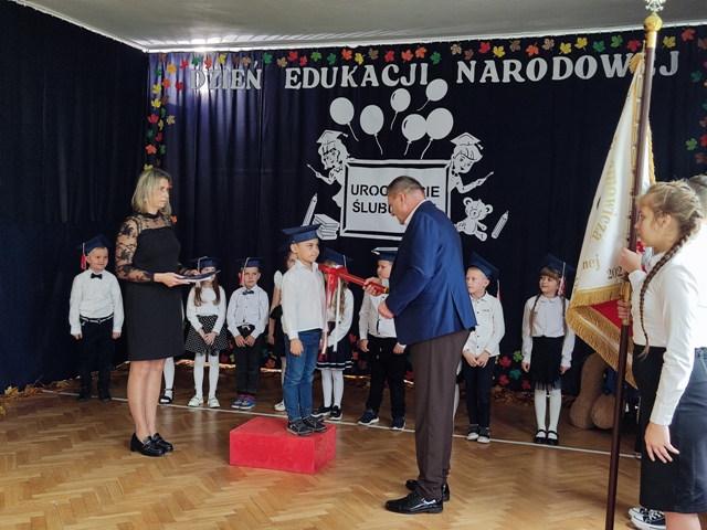14 października obchodzony jest Dzień Edukacji Narodowej. To wyjątkowy dzień, w którym uczniowie wyrażają swoją wdzięczność nauczycielom oraz pracownikom szkoły, którzy dbają aby uczniowie mogli rozwijać talenty, poszerzać horyzonty i zdobywać wiedzę oraz nowe umiejętności. W tym roku w naszej szkole ten dzień był połączony z wyjątkową uroczystością – pasowaniem na uczniów klas pierwszych. Uroczystość rozpoczęła się od występu pierwszoklasistów, którzy zaprezentowali piękny program artystyczny, pełen piosenek i wierszy o szkole, wspominając również kilka zdań o sobie i swoich zainteresowaniach oraz marzeniach. Wielokrotnie udowodnili, że są godni przyjęcia ich do grona uczniów naszej szkoły. Z ogromnym przejęciem złożyli ślubowanie, a następnie zostali symbolicznie pasowani przez Pana Dyrektora na uczniów naszej szkoły. Od tej chwili stali się pełnoprawnymi członkami szkolnej społeczności! W tym ważnym dla nich dniu towarzyszyli im ich rodzice dodając otuchy.