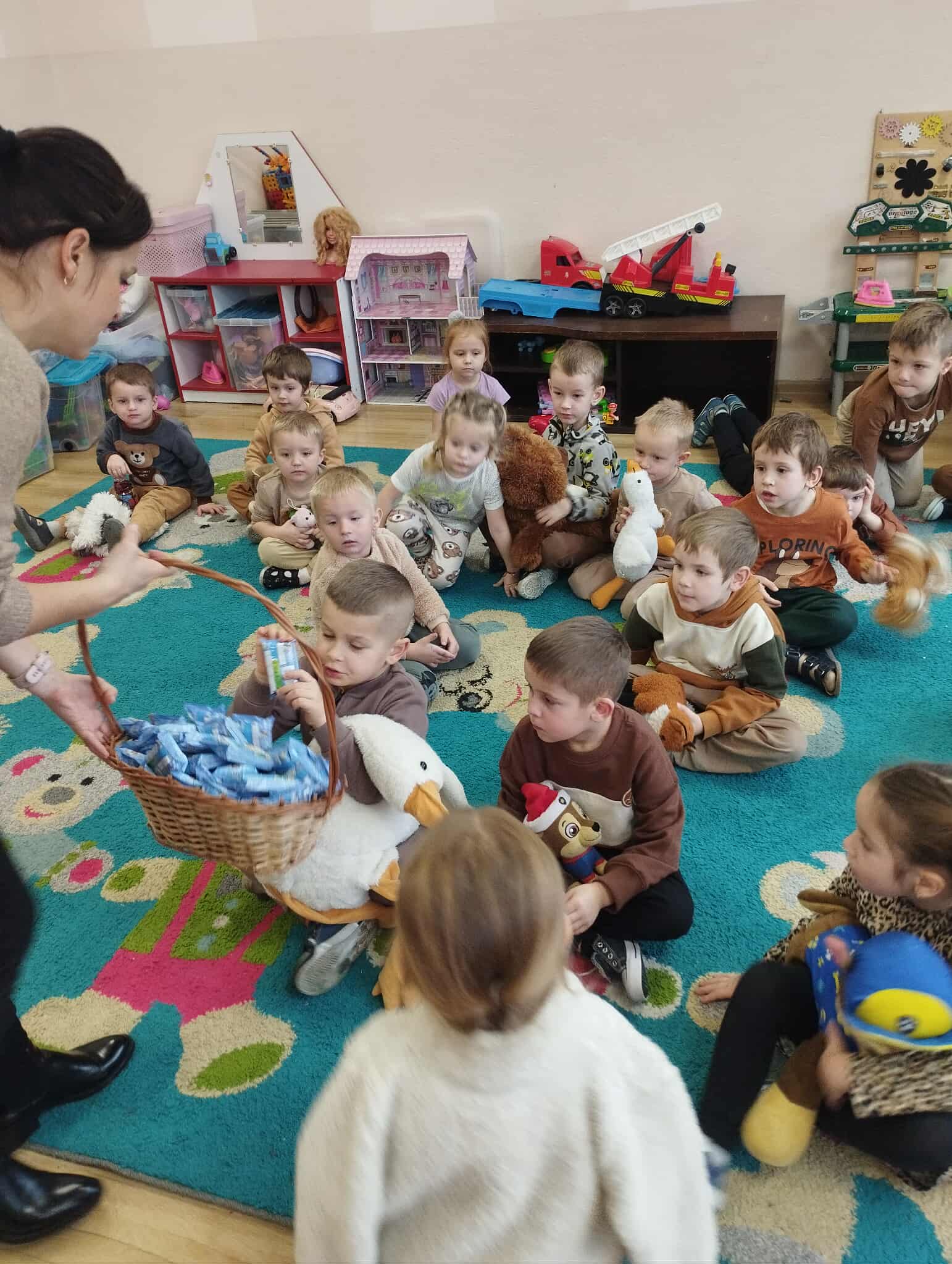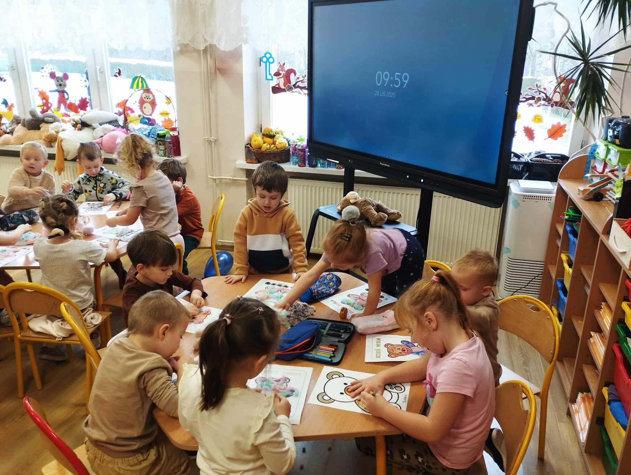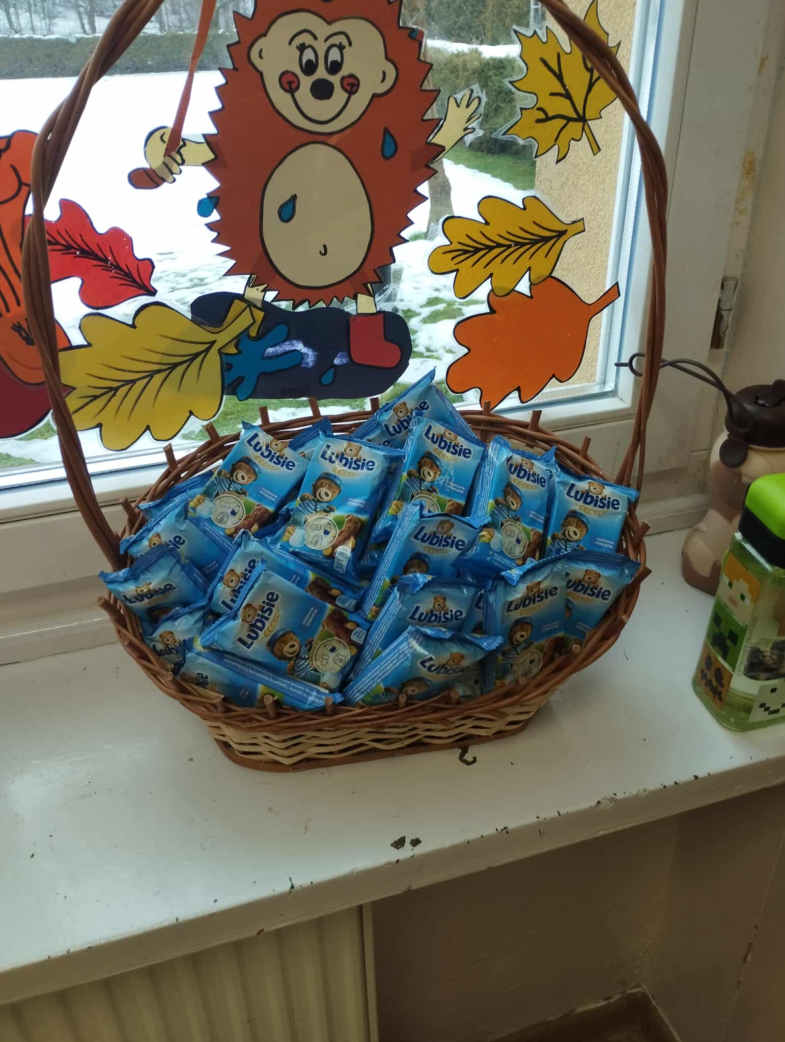 Do naszej szkoły również przybył dzień wcześniej ogromny pluszowy Miś, który gabarytami znacznie odbiegały od standardowych zabawek. Nasi najmłodsi uczniowie z oddziału przedszkolnego były przeszczęśliwe, gdy mogły przytulić się do tak dużej maskotki ( w rękach trzymając swoje ulubione misie przyniesione z domu) i to w dodatku ożywionej? Było mnóstwo misiowych zabaw, piękna praca plastyczna z użyciem mięciutkiej wełny ,skoczne i wesołe piosenki, a także tego co wszystkie misie lubią najbardziej, czyli słodkości. To był wyjątkowy dzień, każdy z pluszaków był wyjątkowy. Ile sekretów, myśli i słów usłyszał przez ten czas każdy z nich, wiedzą tylko one…