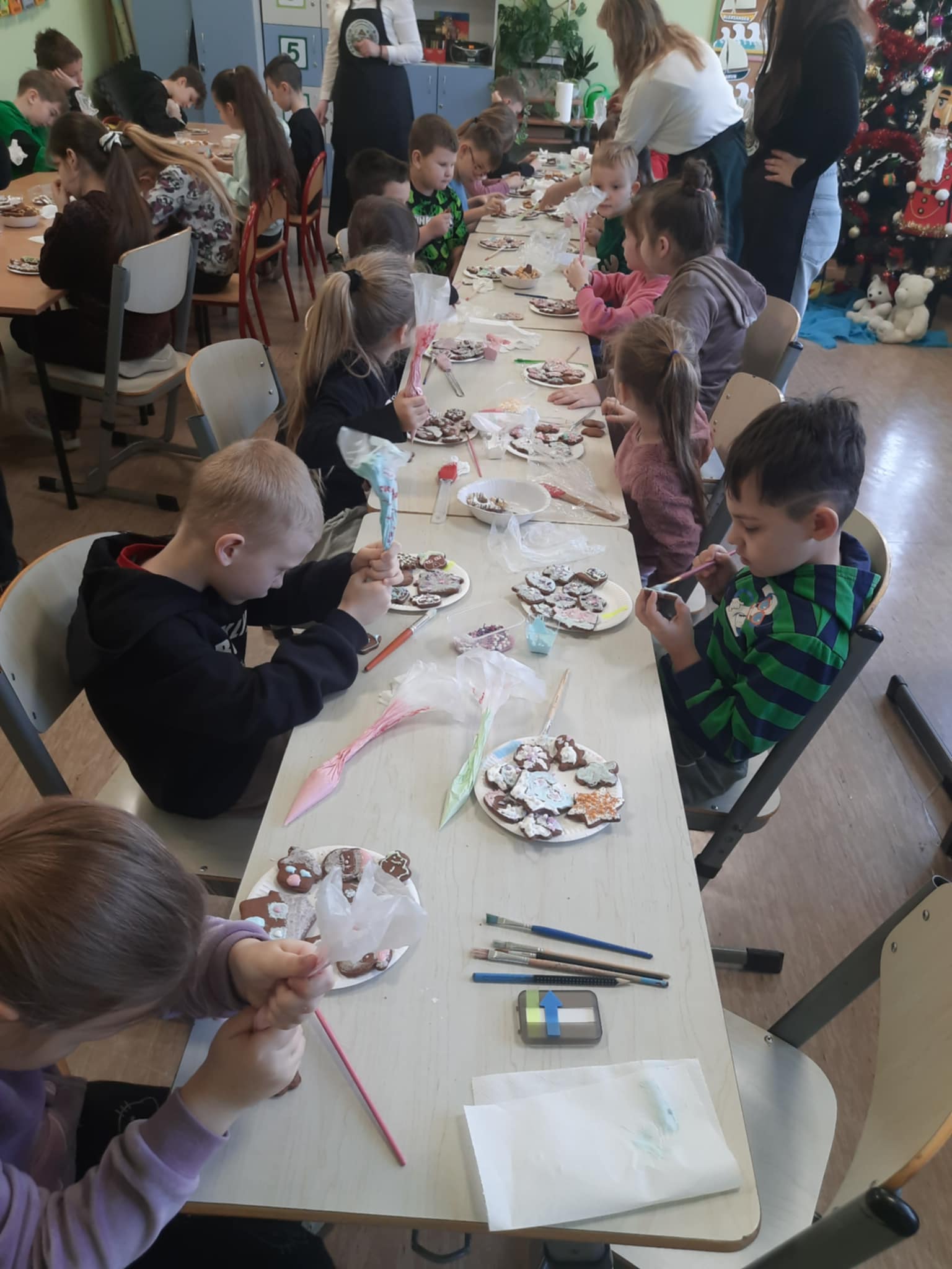 Warsztaty piernikowe w przedszkolu to nie tylko twórcza zabawa, ale również nauka cierpliwości, precyzji, współpracy i rozwijanie zdolności manualnych. Przygotowanie różnych kształtów, własny projekt dekoracji, pod bacznym okiem profesjonalistek sprawiły, że zajęcia te były niezmiernie atrakcyjne i integracyjne dla całej społeczności przedszkolnej i wczesnoszkolnej.