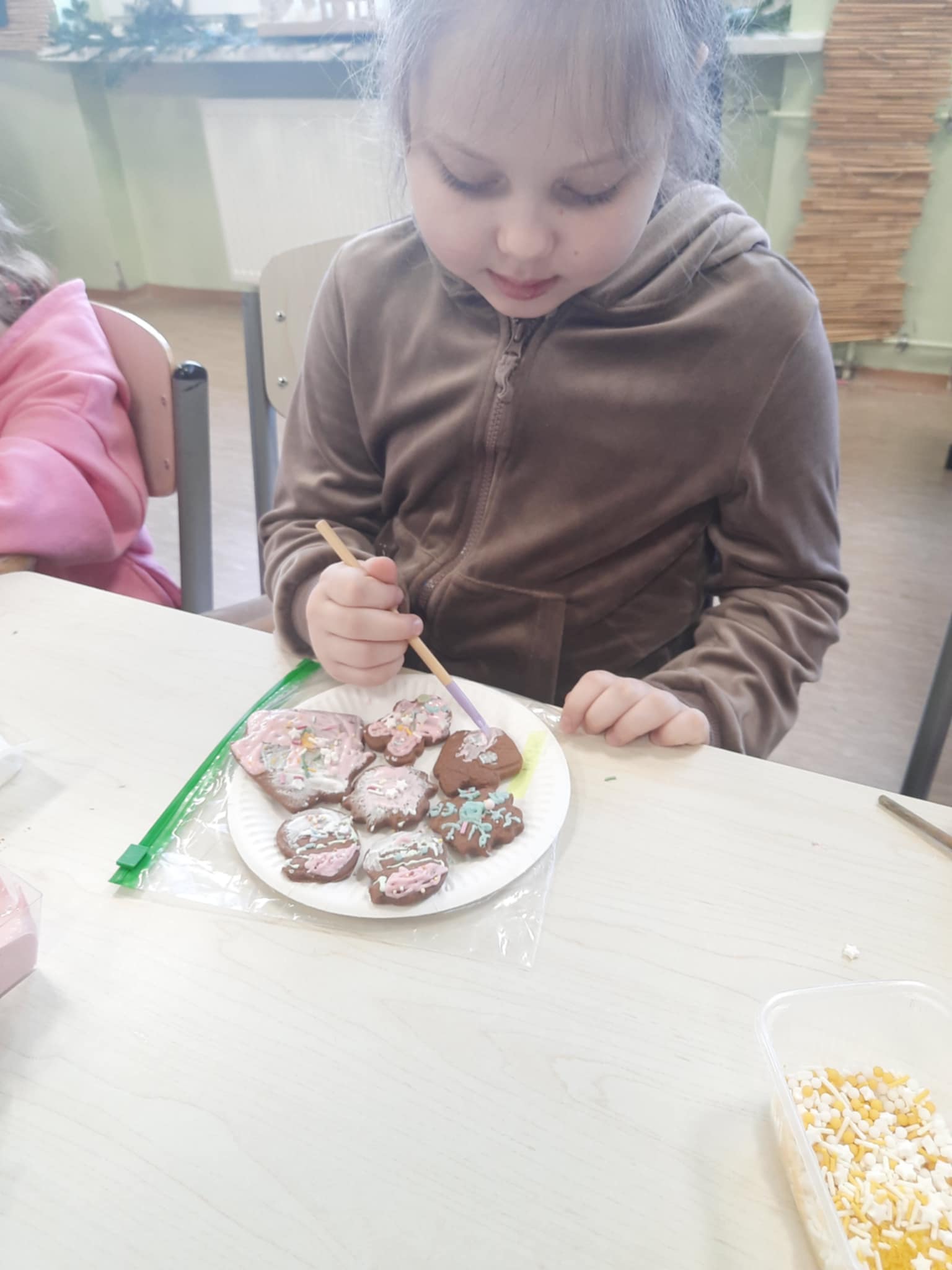 Coraz bliżej święta- te słowa słyszymy w jednej ze świątecznych piosenek. Można też było ją usłyszeć we wtorek 16 grudnia , gdy w pięknych strojach, z ogromną ilością pierniczków, różnych ozdób i lukrów- przybyły do nas zaproszone Panie z KGW Kamienica Górna. Zrobiły to zupełnie bezinteresownie, a to w dzisiejszych czasach nie takie oczywiste. Pani Basia, Pani Marta i pani Karolina sprawiły, że święta tego dnia były jeszcze bliżej nas. Dzieci przepięknie ozdobiły pierniczki, które po wyschnięciu wspólnie z wychowawczyniami zapakowały i zabrały do swoich domów.