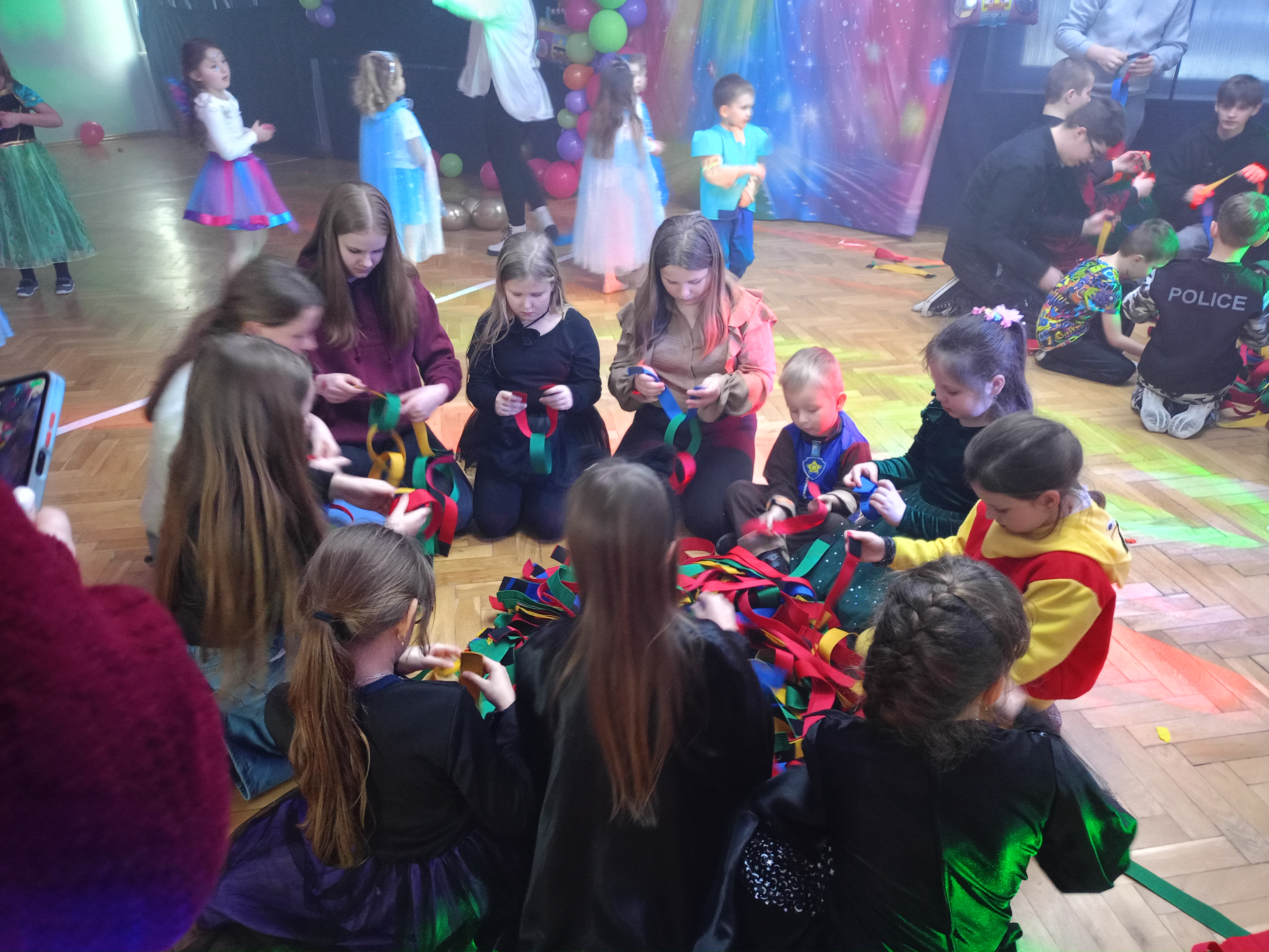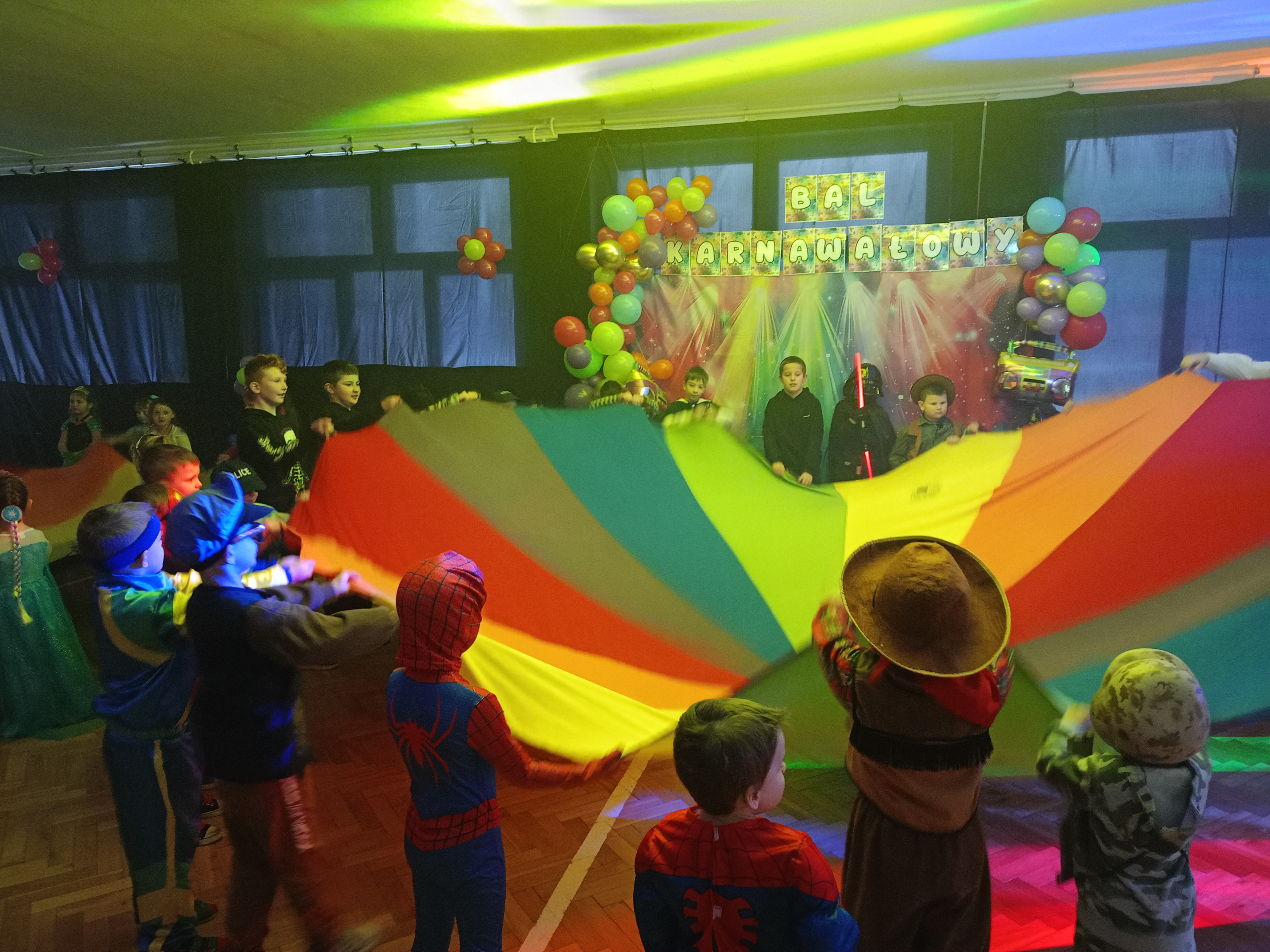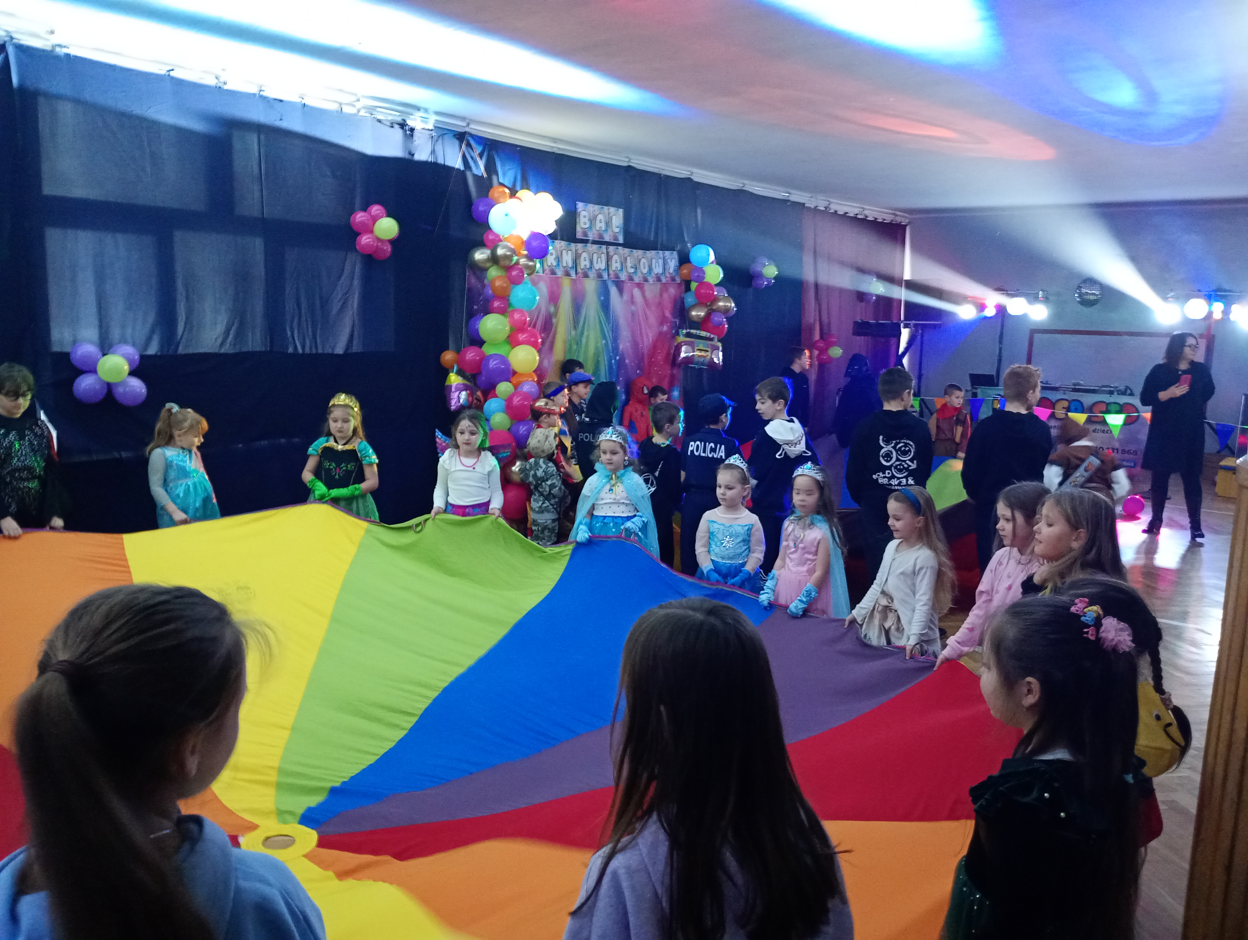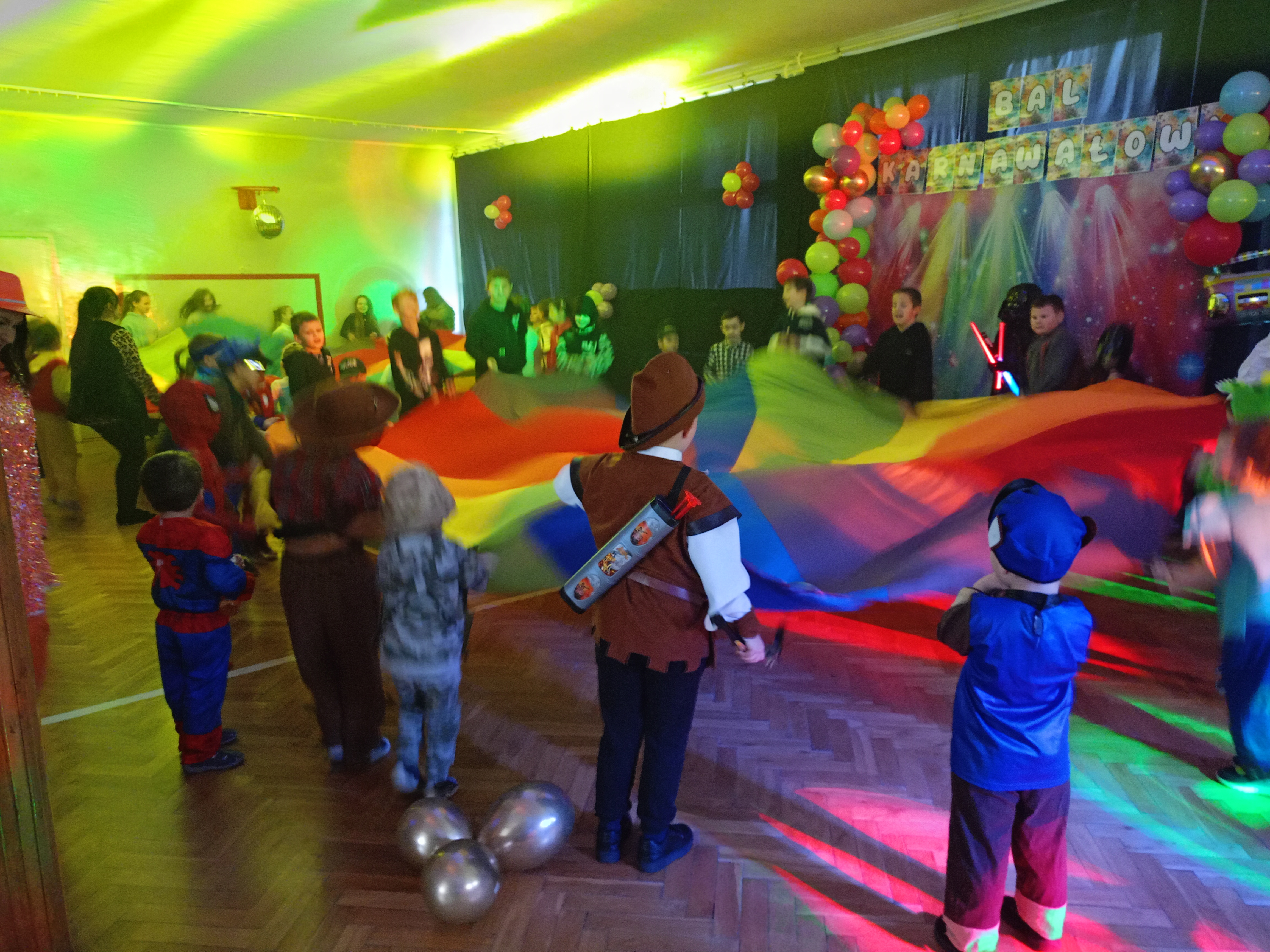 Tak tez było 10 stycznia w sobotę. Piękne stroje karnawałowe, tajemnicze maski, wyszukane atrybuty i nakrycia głowy- to wszystko sprawiło, że nasza sala gimnastyczna zamieniła się w prawdziwą salę balową. Każde z dzieci wcieliło się w wymarzoną postać. Były księżniczki, wróżki, super bohaterowie, policjanci, strażacy a nawet Zorro. Tańce, szaleństwa z kolorowymi piłeczkami, limbo, wariacje z chustą animacyjną, woskowe figury, bańki mydlane i armatki śnieżne. Mnóstwo kolorowych świateł, skoczna muzyka, przy której unoszący się ciężki dym, dodawał efektu WOW ! To wszystko zasługa naszych wspaniałych animatorów Kinder SID, którzy w pełni profesjonalnie zorganizowali zabawy nie tylko dla najmłodszych, lecz i tych nieco starszych uczniów naszej szkoły. Z pewnością nikt nie podpierał ściany, tylko świetnie się bawił.