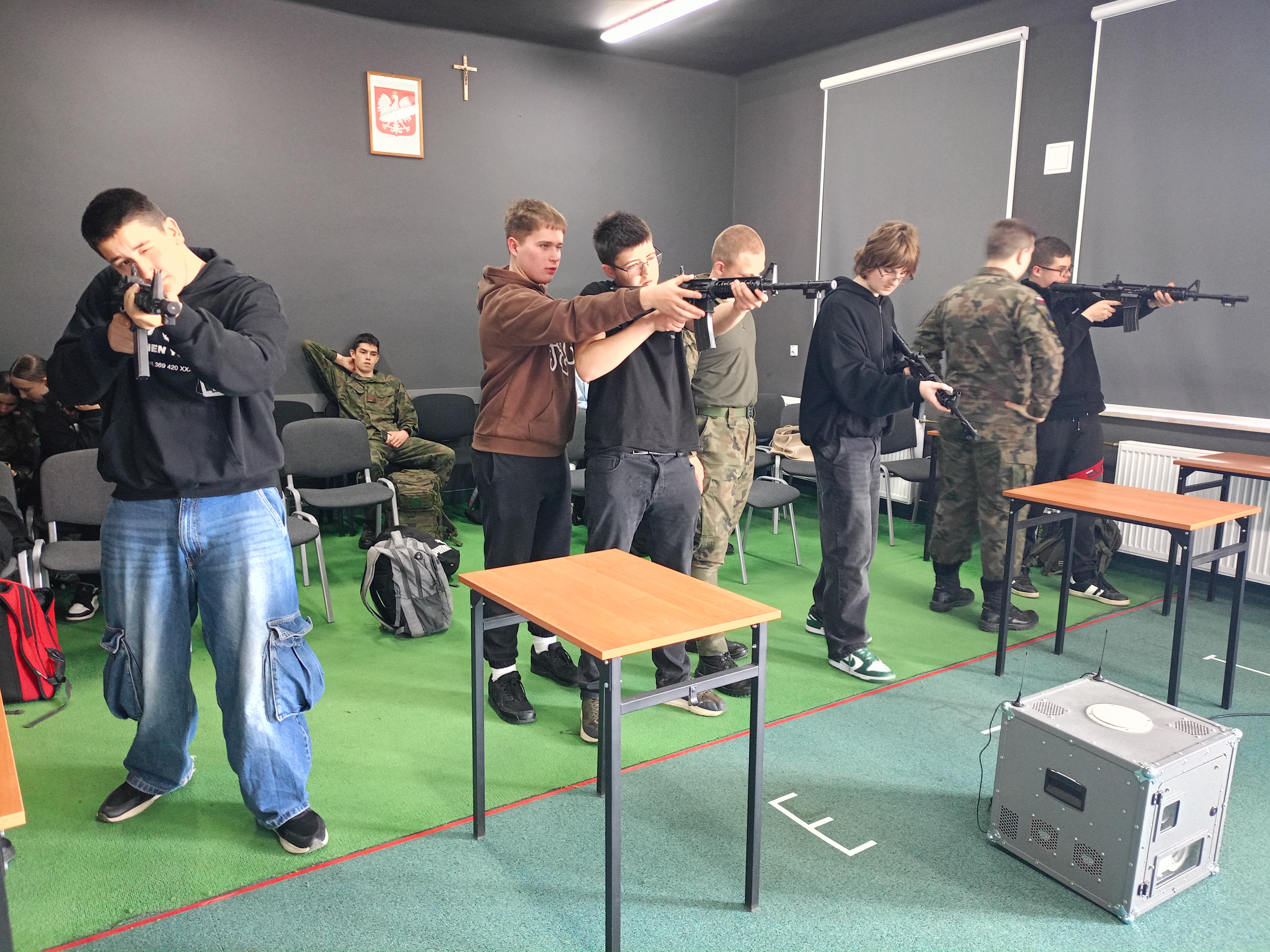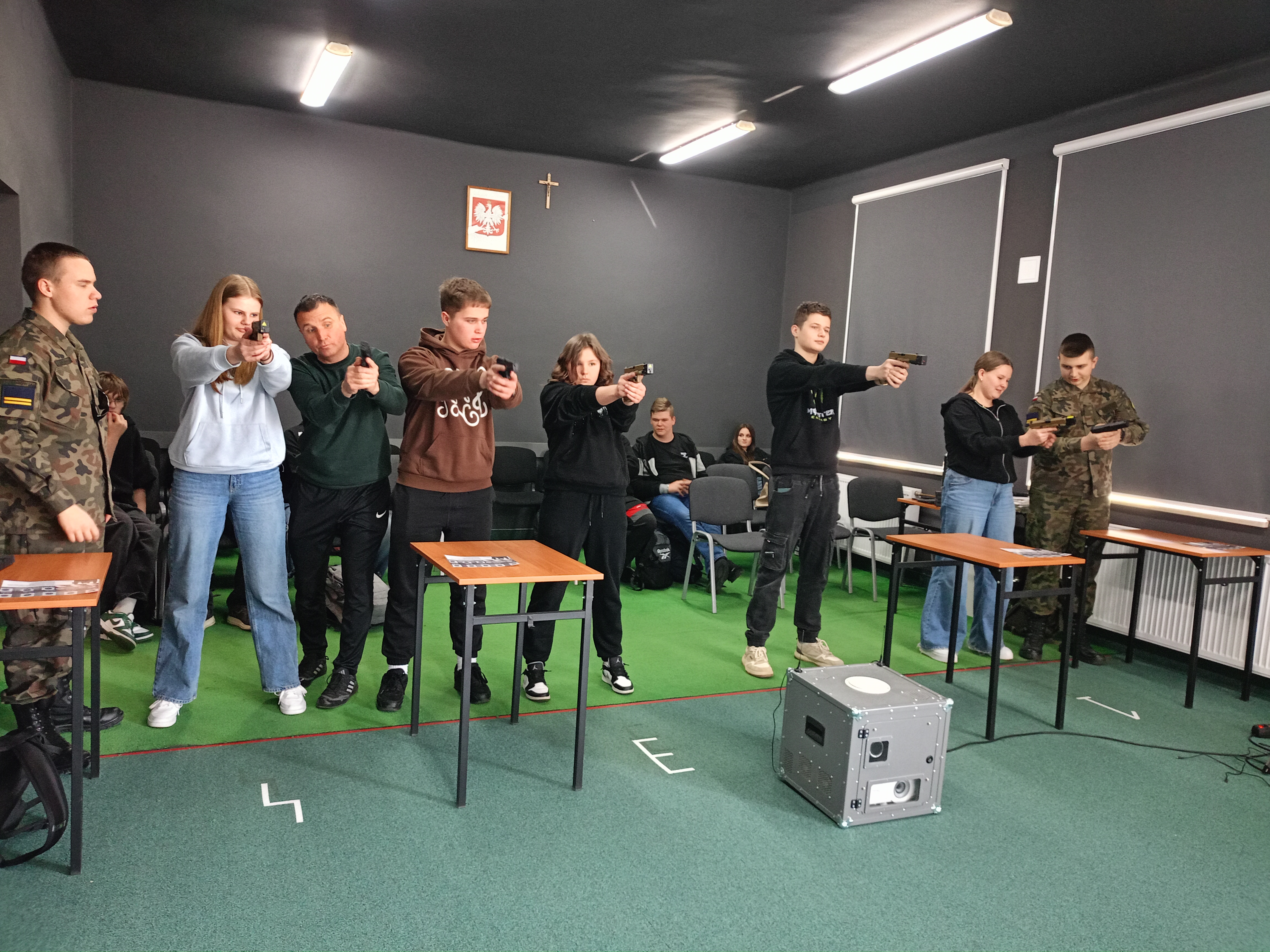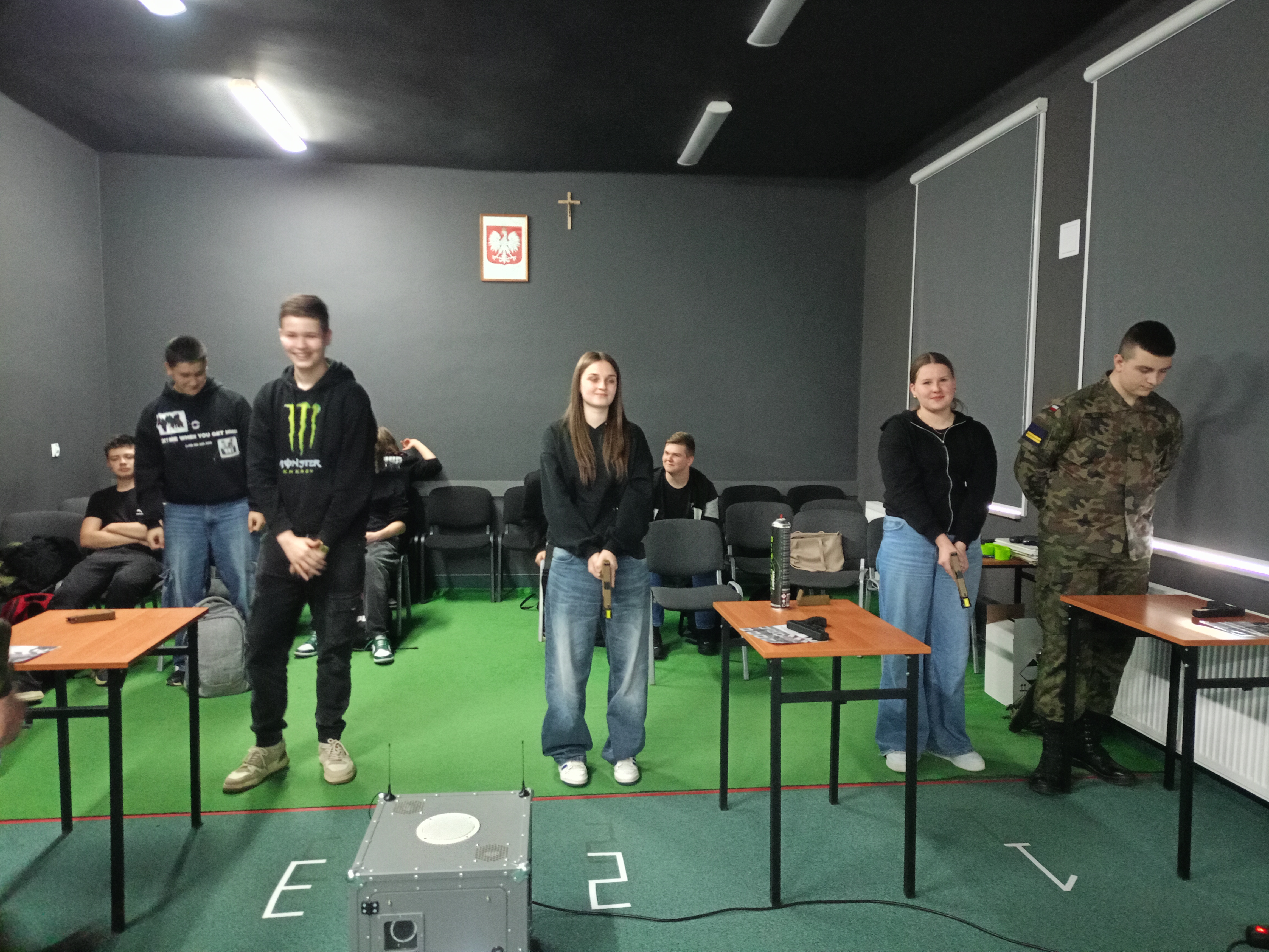 W dniu 23 kwietnia 2026 roku uczniowie klasy ósmej w ramach zajęć z edukacji dla bezpieczeństwa wybrali się na wirtualną strzelnicę do Liceum Ogólnokształcące im. Marii Curie Skłodowskiej w Kołaczycach.