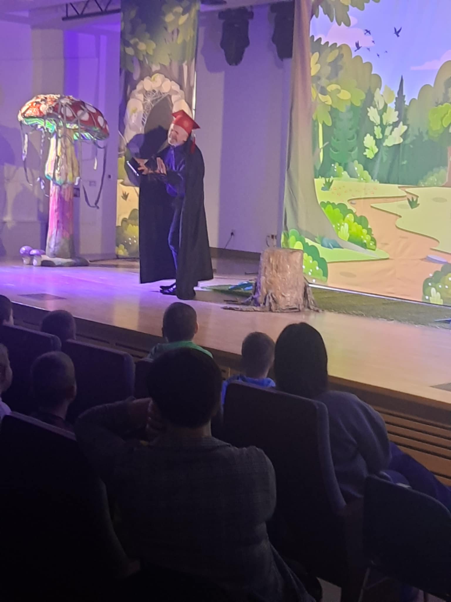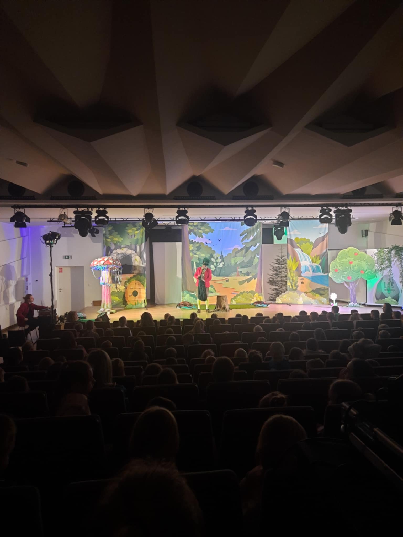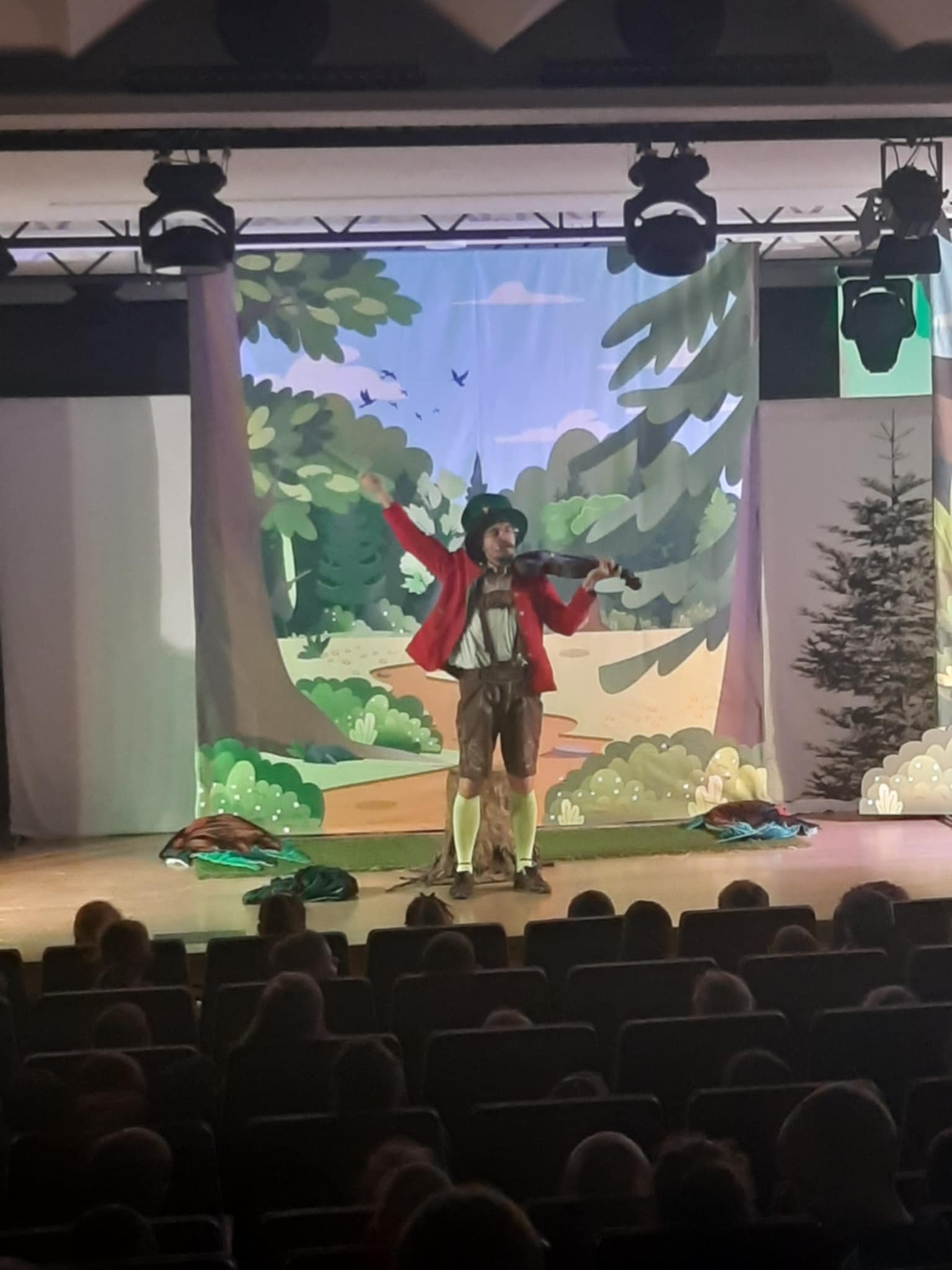 Najmłodsi uczniowie z klas 0–3 z dużym zainteresowaniem śledzili losy bohatera przedstawienia „Przygody zazdrosnego Liliputka”, zaprezentowanego przez aktorów teatru z Łodzi. Barwna scenografia, dynamiczna akcja i humor sprawiły, że spektakl bardzo spodobał się dzieciom, a jednocześnie w przystępny sposób poruszał ważne wartości, takie jak przyjaźń, współpraca i wzajemny szacunek.