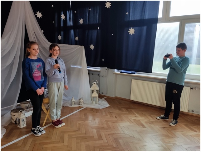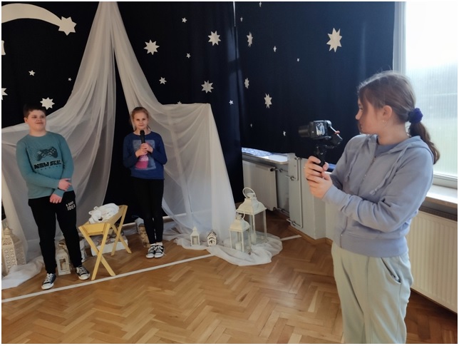 Uczniowie wykorzystując nabyte umiejętności odnośnie obsługi sprzętu audio-video aktywnie je wykorzystywali podczas „Spotkania z Mikołajem” gdzie nagrywali taniec dla Mikołaja wykonywany przez wszystkich uczniów naszej szkoły oraz robiąc zdjęcia pamiątkowe ze Świętym. Sprzęt został także wykorzystany na Wigilii Szkolnej, gdzie był nagrywany program artystyczny. Robienie zdjęć i nagrywanie filmów okazało się ciekawym doświadczenie dla uczniów a same zdjęcia i filmiki wspaniałą pamiątką.